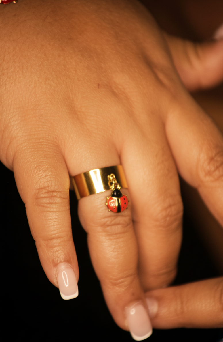 Porter cette bague coccinelle porte-bonheur dorée, c’est afficher ta lumière intérieure avec une touche dorée, chic et pétillante.