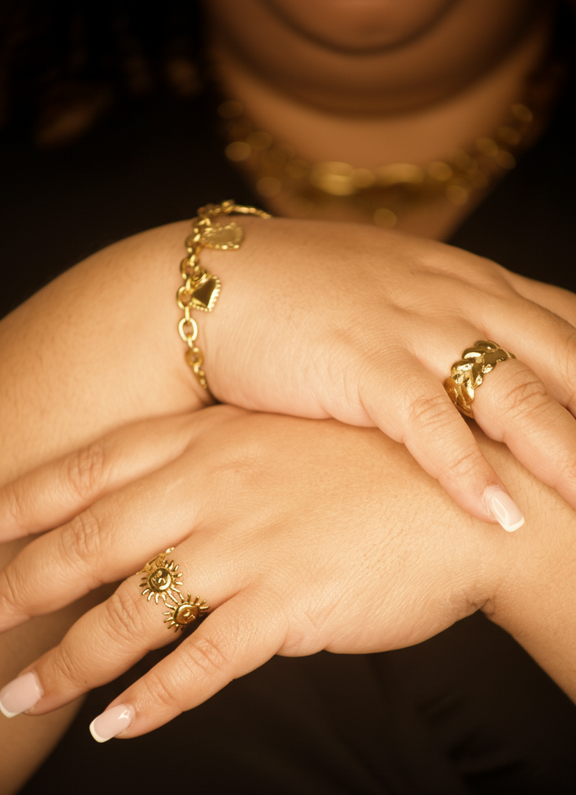 Une bague dorée symbolique qui te rappelle de briller, même les jours nuageux.